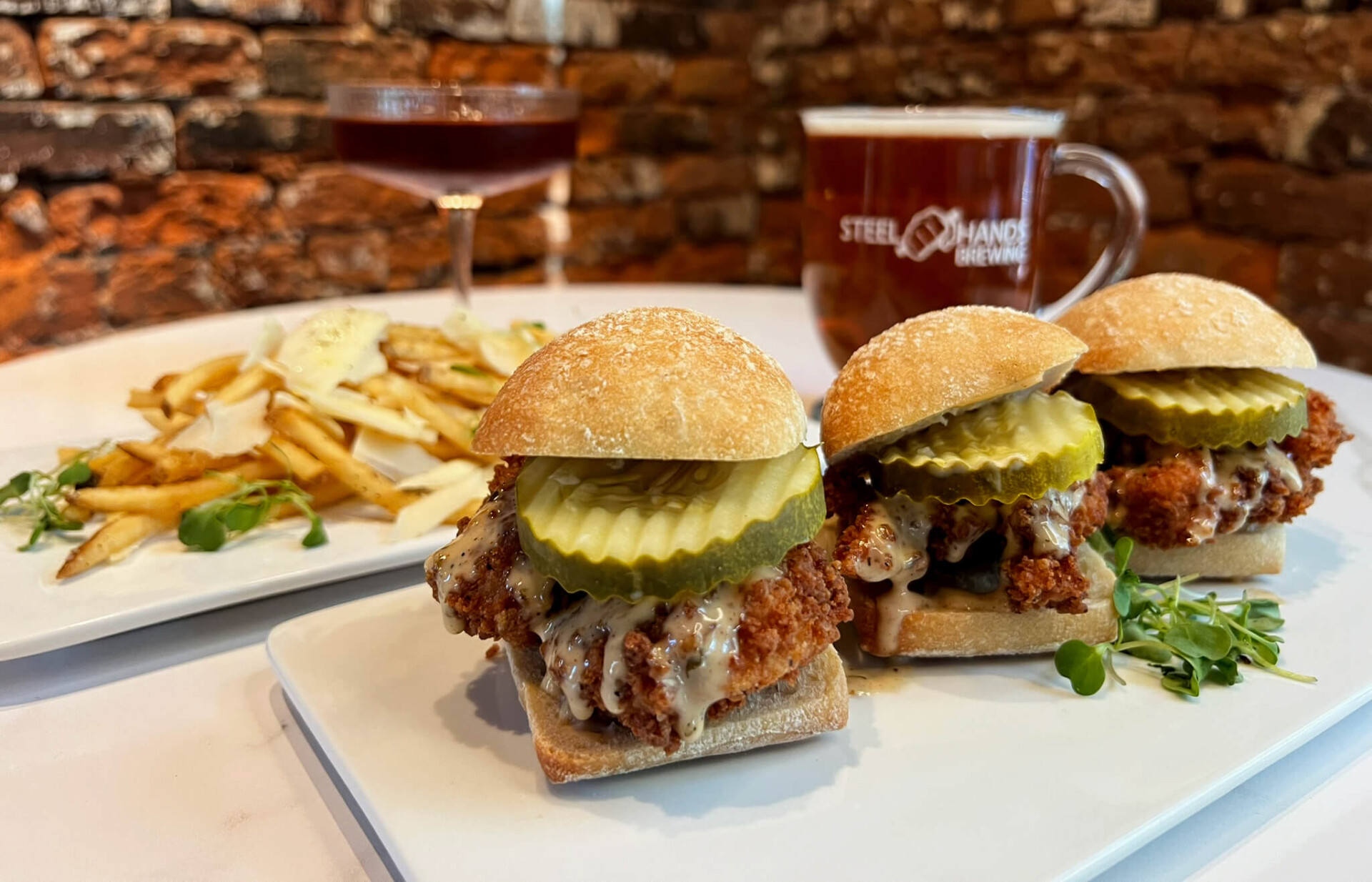 Three Fried Chicken Sliders – Cajun Ranch & Pickles